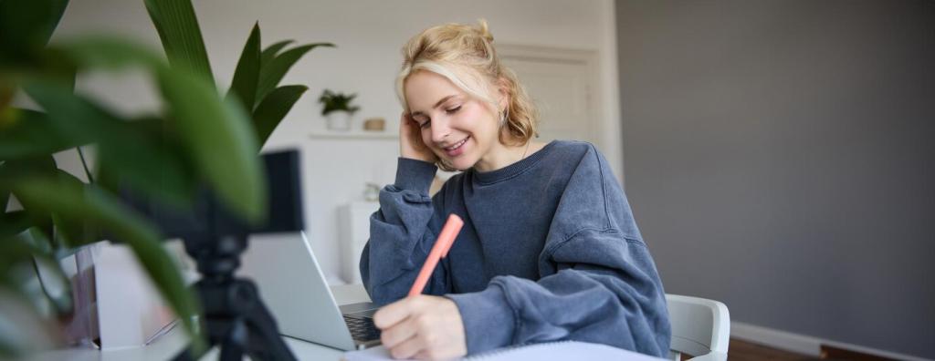 Beschreibe Wirkung, nicht nur Ton: „Salbeigrün, das Morgenlicht ruhiger wirken lässt.“ Setze Farbwörter in Alltagsszenen, etwa Frühstückstisch, Leseecke oder Homeoffice. Leser projizieren Bilder und fühlen sich näher an der Entscheidung.